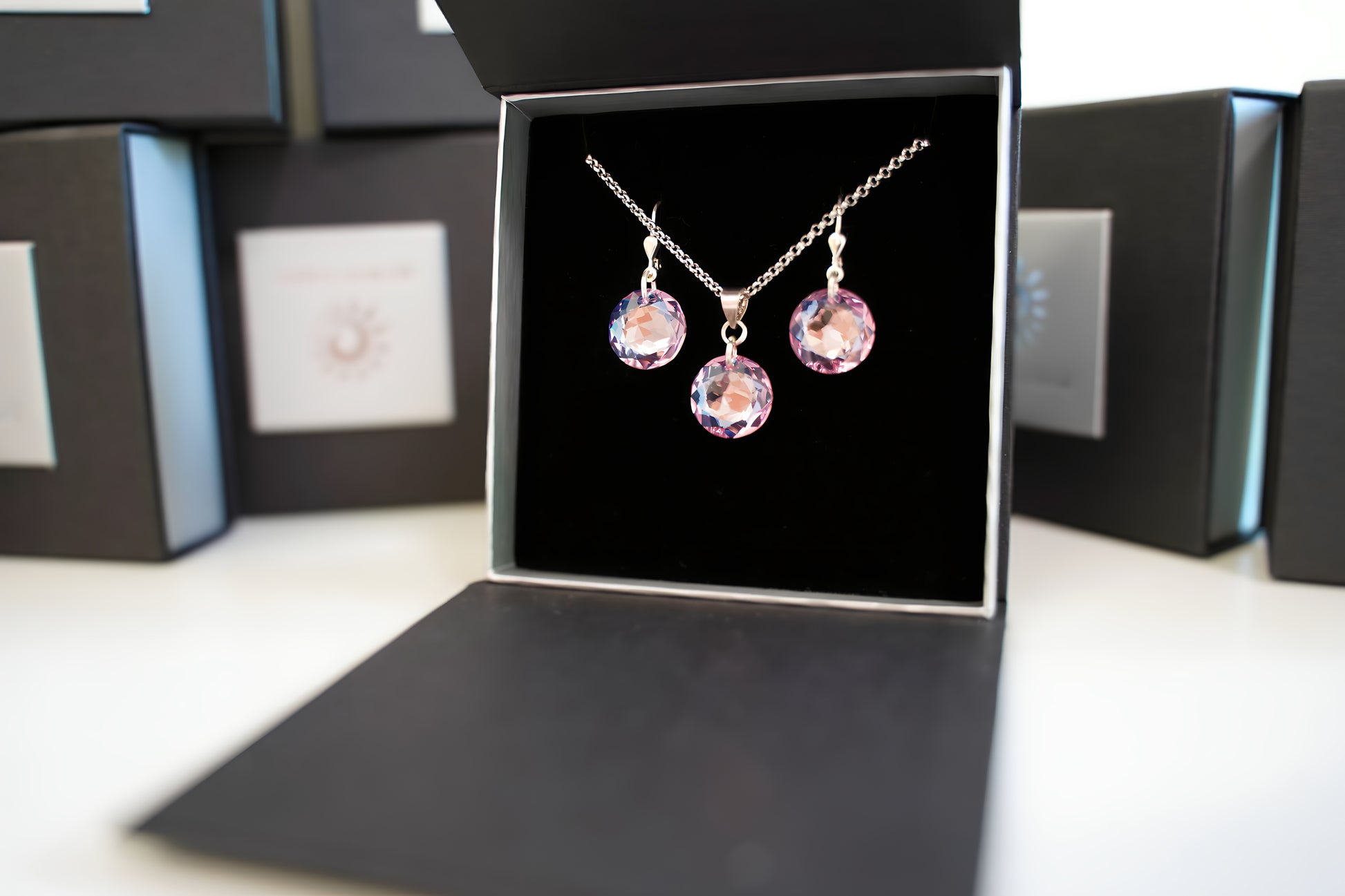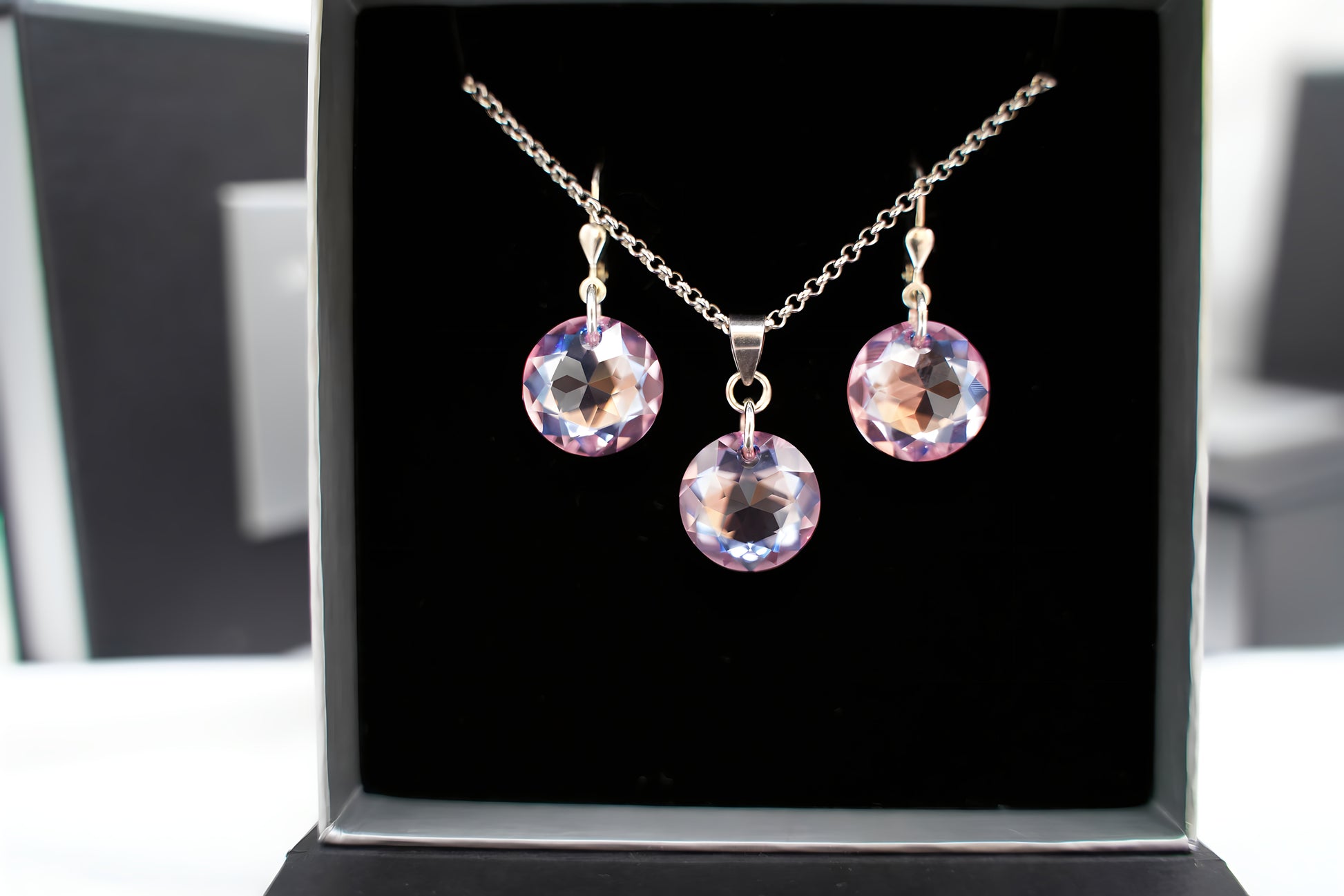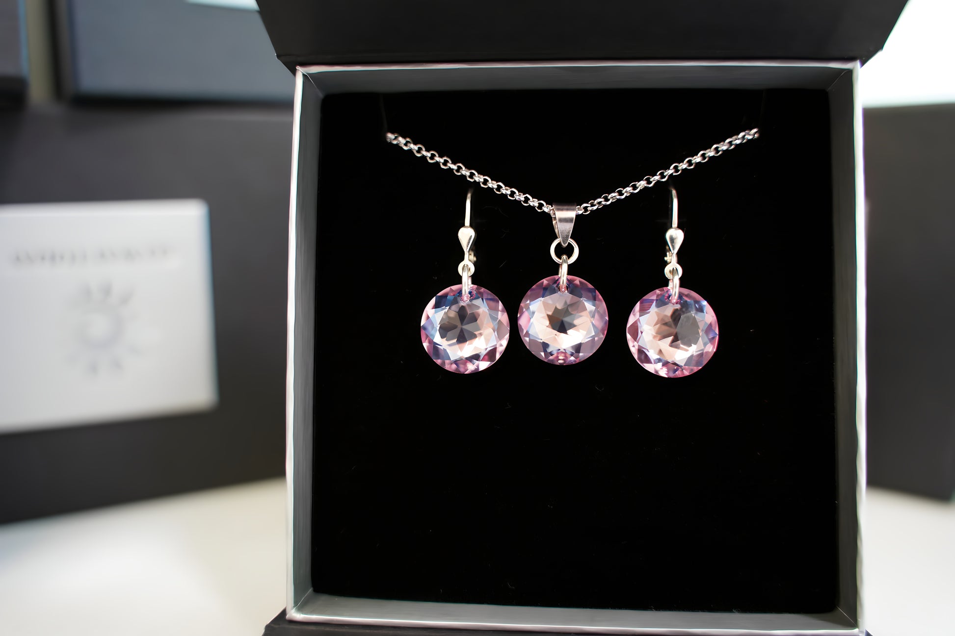 Zartrosa Disc-Set mit Swarovski® 1017ko