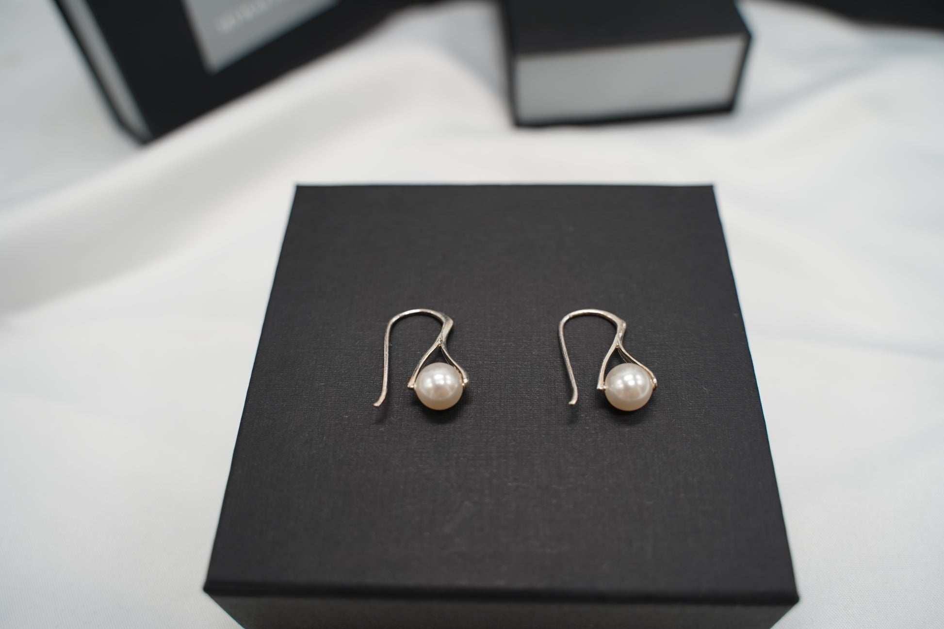 Diese filigranen Loop-Ohrringe aus 925er Sterling-Silber tragen zarte, naturweiße Süßwasserperlen, die sanft unter dem Ohrläppchen schwingen. Die elegante Öse („Loop“) erlaubt ein leichtes Hinein- und Herausgleiten sowie ein angenehmes, sicheres Tragegefühl. Mit ihrem puristischen, organischen Design setzen sie einen dezenten, aber edlen Akzent und passen gleichermaßen zum Casual-Look wie zum festlichen Anlass.
